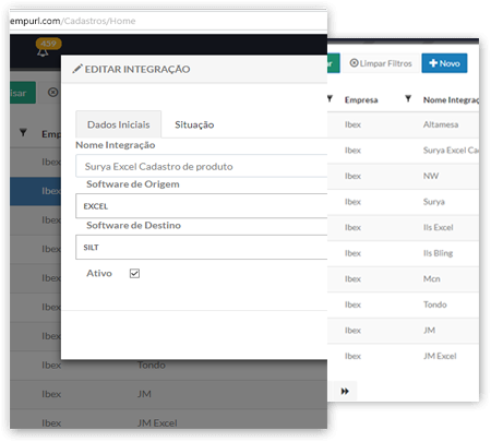 Integrando os mais diversos softwares selecionando apenas o software de Origem e o software de Destino.